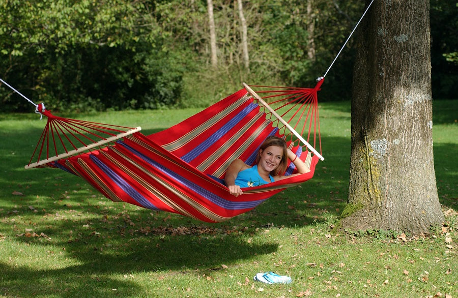L Aruba hengekøye kan henges fra trær eller fra et stativ.