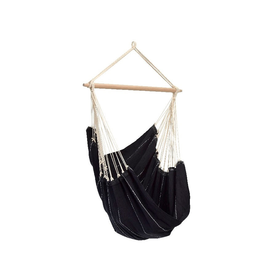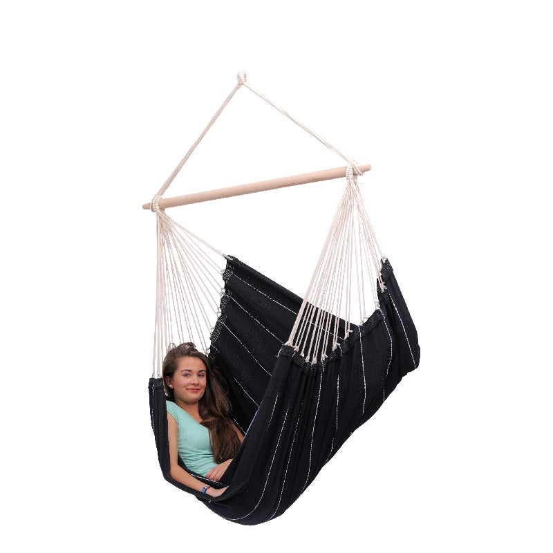 Brasil black XL leveres med en robust tverrstang i tre og med ekstra tykt bomullsstoff. Foruten at stolen er svært komfortabel er den veldig sterk og tåler vekt opptill 150kg.
